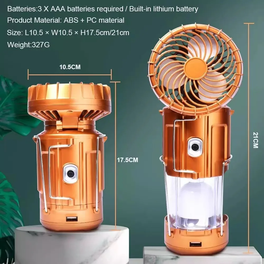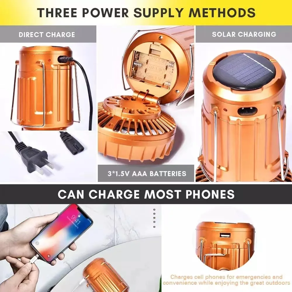 مصباح التخييم اليدوي قابل للشحن بالطاقة الشمسية و خيط USB كما يمكن شحن الهاتف من مدخل USB و يتوفر على مبرد من درجة عالية يمكن استخدامه في السيارة و غرفة النوم يعطي اريحية أكثرعند النوم عن طرقة التبريد ، كما يحتوي على مصابيح LED التي تعطي اضاء عالية في الليل و أثناء التخييم و التي بدورها تسهل الرؤية الليلية في حالة وقوع اي عطب عند السياقة في الليل ، مصباح ممتاز و بامتيازات جيد جدا سارع للطلب الكمية محدودة .